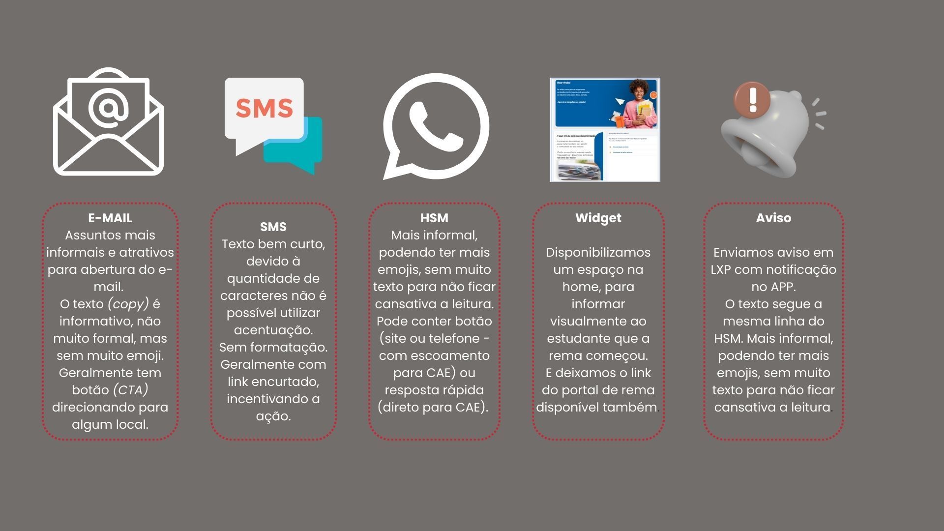 Essa régua é mais informativa, para falar de prazos e informar sobre o período de renovação.
