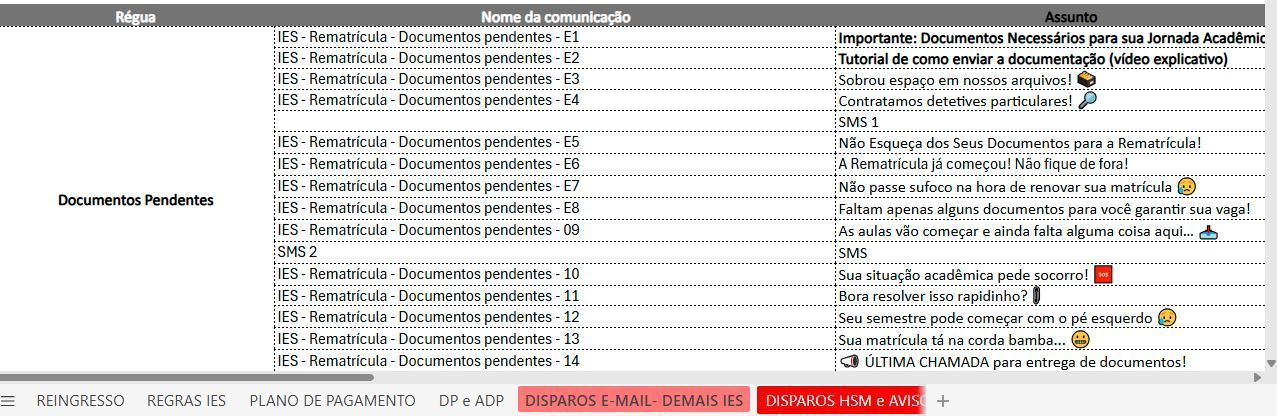 Essa comunicação tem com o gatilho a data de início de aulas de cada IES.