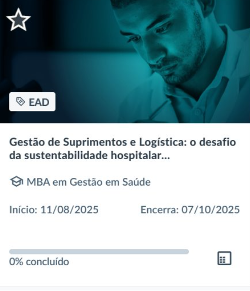 O certificado do seu curso estará disponível em até 60 dias úteis após o encerramento da sua última disciplina, cuja data de término pode ser acompanhada no card inicial, como destacado na imagem ao lado.