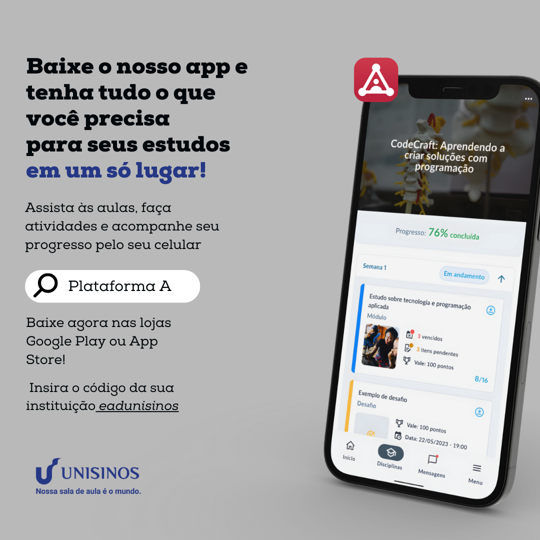 Descubra a facilidade de aprender onde e quando quiser com o nosso aplicativo exclusivo! A plataforma foi desenvolvida para proporcionar uma experiência de aprendizado otimizada, oferecendo acesso direto a todas as suas aulas e materiais.