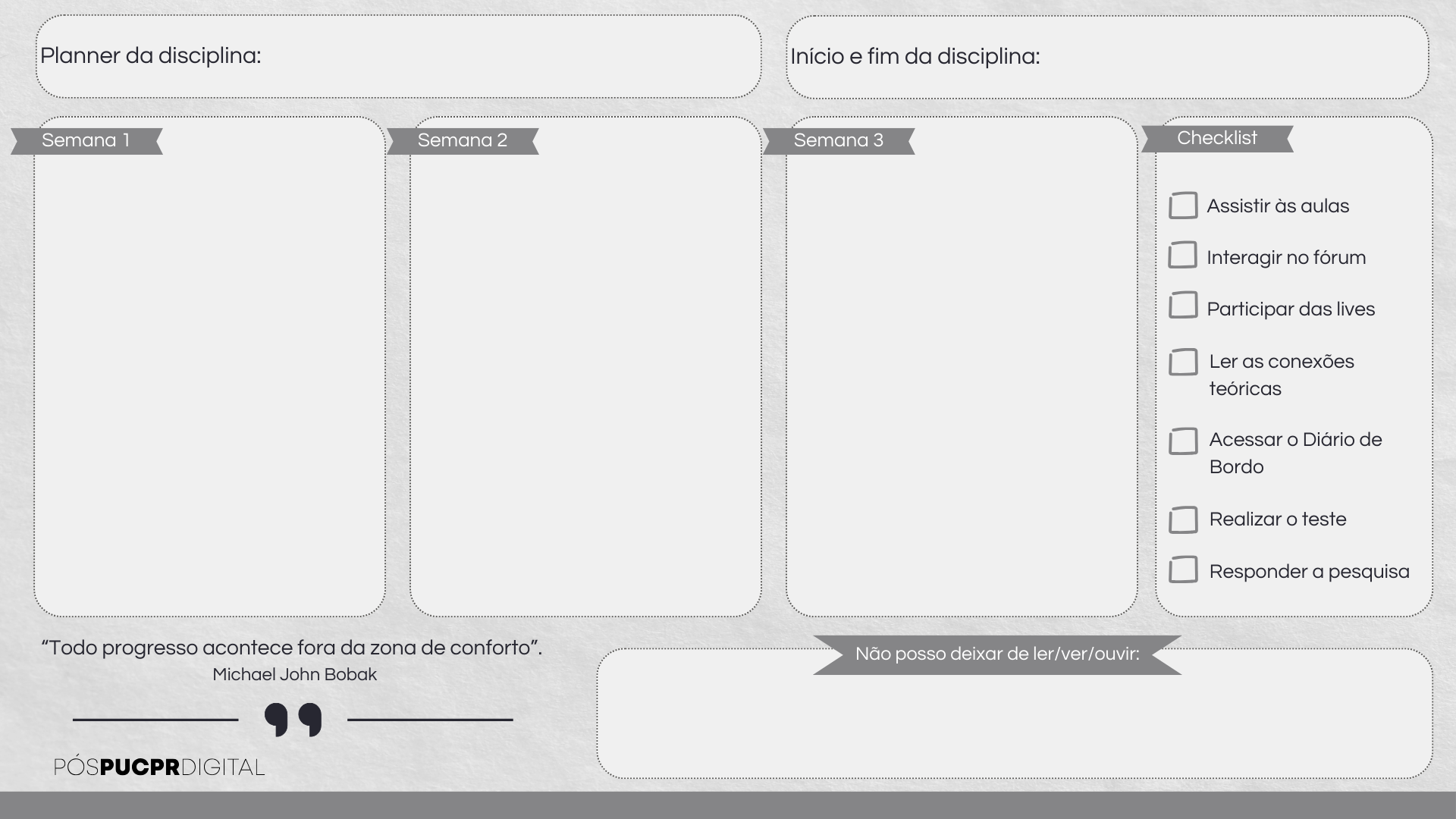 Criamos modelos exclusivos que estão disponíveis no Instagram da Pós PUCPR Digital.  Para postar o seu momento, clique no botão abaixo, e acesse o destaque "Sua vez".
