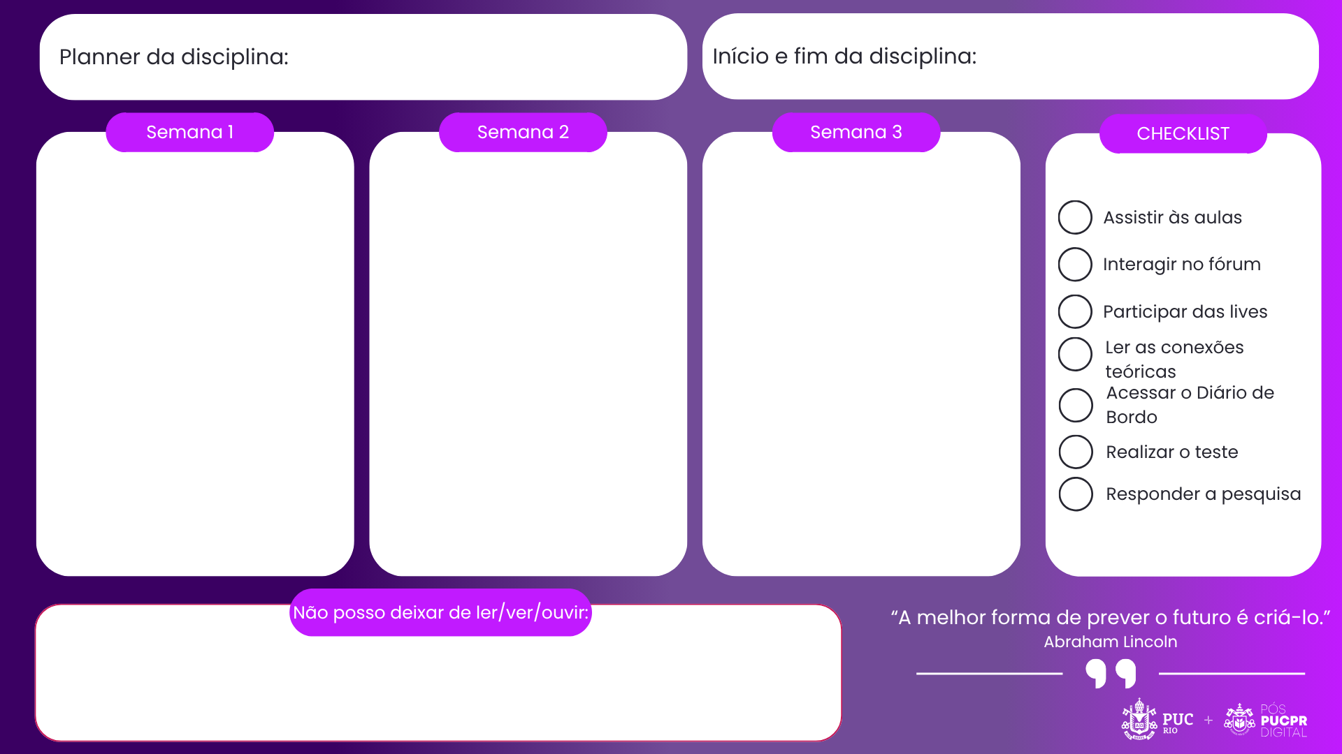 Quer um apoio para otimizar sua rotina de estudos? Baixe agora um dos planners abaixo, especialmente preparados para você.
